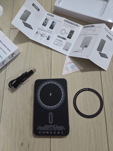This 10,000mAh thin magnetic wireless power bank features a Li-Polymer battery and supports two-way fast charging with up to 20W output. Equipped with USB Type-C and Micro USB input interfaces, it offers Wired and wireless charging compatible with iPhone models from 8 through 15 Pro Max, Samsung S20 to S23 Ultra, Huawei, and Xiaomi devices. The metal shell ensures durability, while certifications including RoHS, CE, and FCC guarantee safety and quality. A digital display provides clear battery status, making it a reliable and efficient portable charging solution.