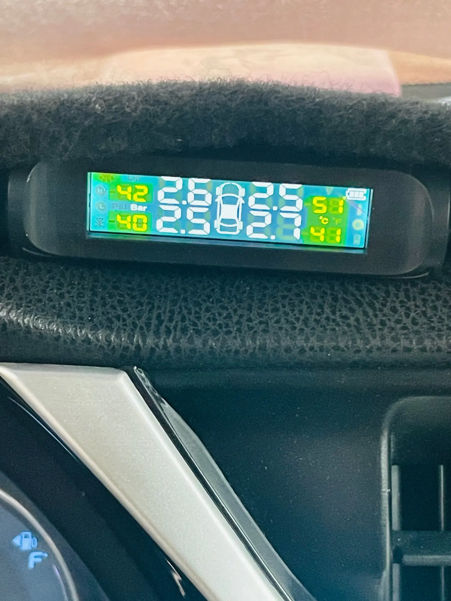 The tire pressure reading is accurate.